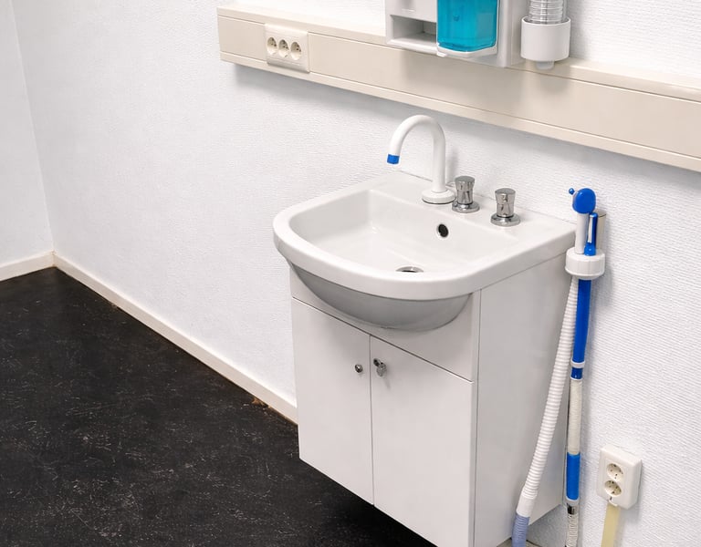Tot slot is de kliniek voorzien van nieuwe kranen en wasbakken, waarbij zowel functionaliteit als een hoogwaardige, hygiënische afwerking centraal stonden.